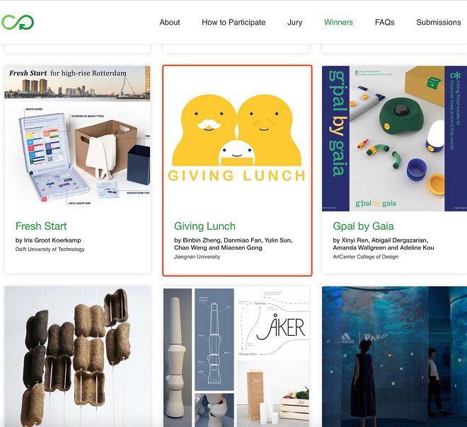 此项竞赛以“为新的循环经济”为主题,回应联合国2030可持续发展目标,希望通过全球设计创意力量来为未来的循环经济提供更多可能性。竞赛共分为产品设计类、服务设计、设计系统类等三个类别,全球共44个国家、163所高校参与,共提交作品683件,共评选出一二三等奖各1项,荣誉提名奖50项。(竞赛结果发布网址://cumulusgreen.org/winners/)