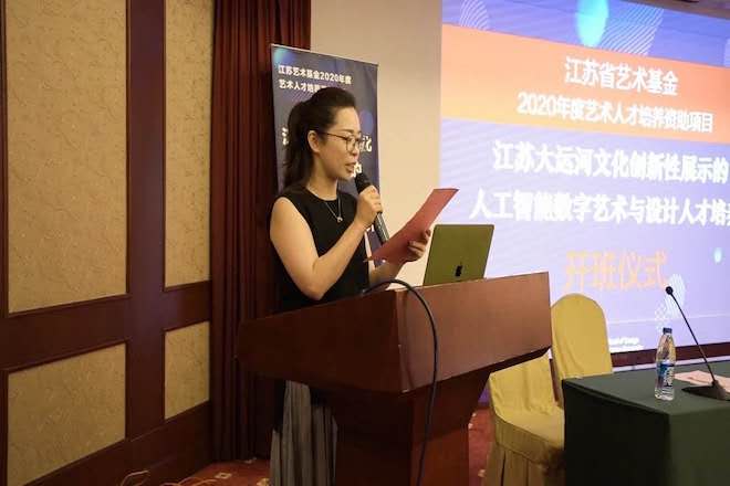 作为项目主体的江苏艺术基金2020年度艺术人才培养资助项目“江苏大运河文化创新性展示的人工智能数字艺术与设计人才培养”项目在无锡花园大酒店正式开班。
