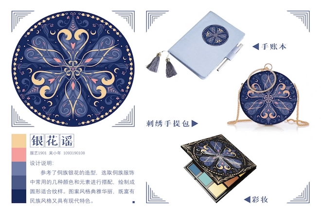 服装系的学生参加了本次文创产品设计活动,以从江各民族纺织非遗项目为设计题材,设计紧紧围绕“非遗融入当代生活”,前后酝酿和设计长达8个月时间,最终完成70多件从江文创产品设计方案,设计方案涉及约300件套文创产品的具体设计效果图,以提供给从江非遗传承人在产品设计和创新时参考借鉴和应用。