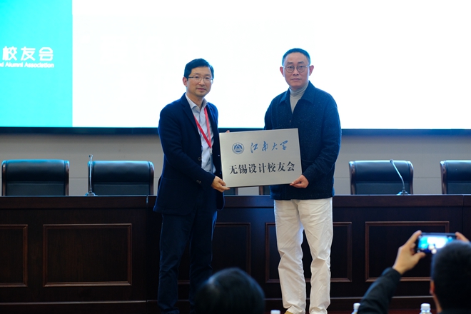 无锡设计校友会会长谈建忠授会牌。窦新华为四虎影院