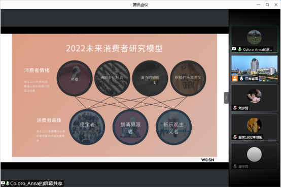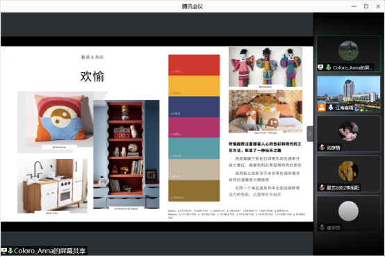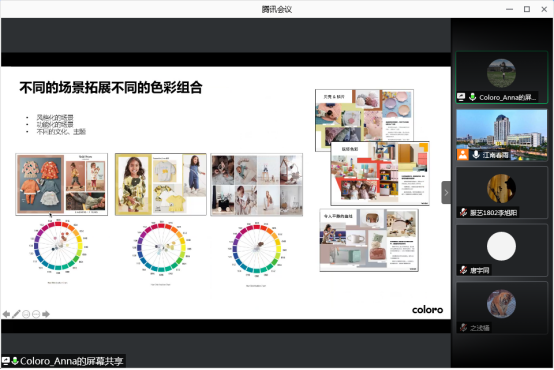 服装与服饰设计专业的师生通过腾讯会议平台聆听了加拿大籍时尚专家曾文欣女士题为《中国应用颜色体系解析——2022春夏童装趋势》的专题讲座。