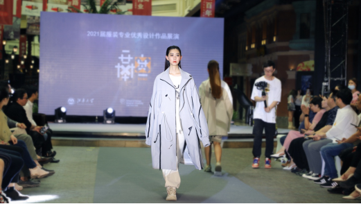 最后,服装专业大三学生的《综合设计》课程作业120件设计作品也登台亮相。学生们以团队协作模式,模拟品牌的设计开发过程,围绕时尚前沿、环保可持续、未来科技等方向展开系列服装设计,强调时尚与实用相结合的设计思维。设计师们用精彩的成衣设计作品,呈现出了人与自然共生共存、现代服饰与高新科技发展交相呼应、传统服饰与现代潮流融合发展的种种激情和火花。