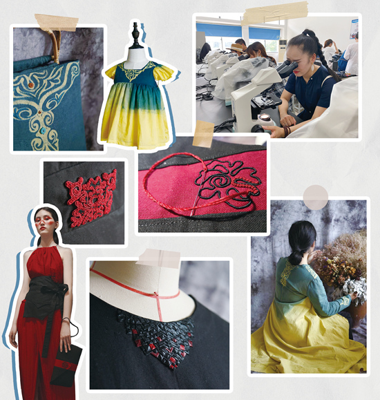 的师生已经为贵州与海南的学员设计创作了200多件(套)非遗文创产品设计方案,将使用权无偿捐献给当地染织绣传承人。