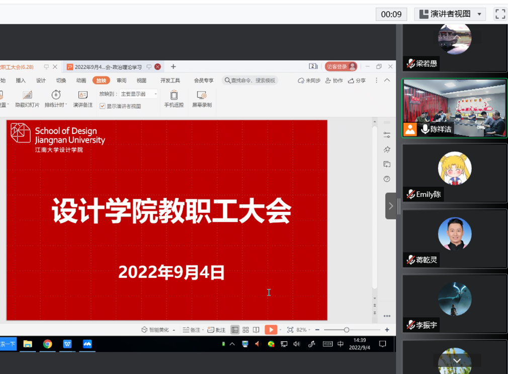 会议期间,同步连线了目前在荷兰访学的工业设计系陈嬿副教授分享了在海外访学期间的学习研究情况;各系部主任也同时向学院全体教师送上了教师节和中秋节祝福。