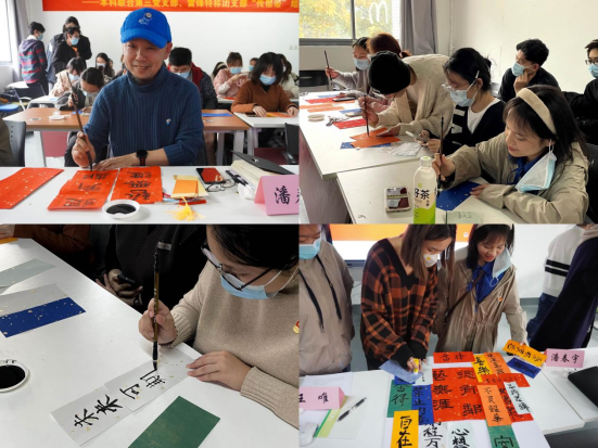 最后,回首过去,展望未来,同学们用毛笔和宣纸,写下对自己、对未来、对国家的寄语与祝福。“艺无涯,德有邻”表达了潘春雨副院长对各位同学的殷切希望,他指出党团共建活动是必要的,是党员发挥先进性的基本途径。要充分发挥党支部、团支部优势,以先进带后进,以悟思想为根本、以办实事为重点、以开新局为目标,继续发挥党员、团员模范作用。