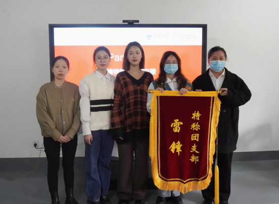 紧接着,进行雷锋特称团支部交接仪式,由分团委书记吴雨琛老师授旗。习近平总书记深刻指出:“我们既要学习雷锋的精神,也要学习雷锋的做法,把崇高理想信念和道德品质追求转化为具体行动,体现在平凡的工作生活中,作出自己应有的贡献,把雷锋精神代代传承下去。”