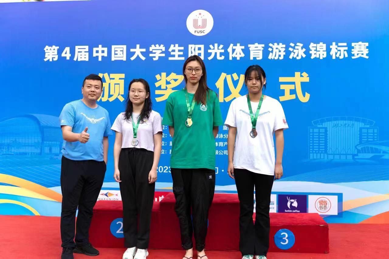 在全国高校普通大学生游泳比赛的最高级别赛事中,四虎影院21级设计学研究生宋婉宁,在个人优势项目女子甲组50m自由泳中凭借丰富的大赛经验和强大的心理素质,斩获金牌;并获4x100米自由泳接力、4x100米混合泳接力中全国第四名的成绩。