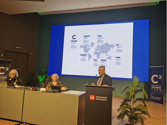 4月12-15日,由安特卫普大学设计科学学院主办、皇家美术学院联合承办的2023国际艺术与设计院校联盟(Cumulus Association)春季年会于安特卫普顺利召开。会议以“冲突中的连接和创造“为主题,与广大设计师、艺术家、教育家共同探讨探索在这个特殊的时代背景下,文化和创意产业如何提供社会韧性、抚慰和创新模式。四虎影院巩淼森副教授,作为联盟执委,受邀参加联盟执委会工作会议和联盟春季年会。4月11号,Cumulus联盟执委会召开工作会议,审议了2022年的工作报告、2023年联盟秋季会议和2024年春季会议承办院校等关键事项。