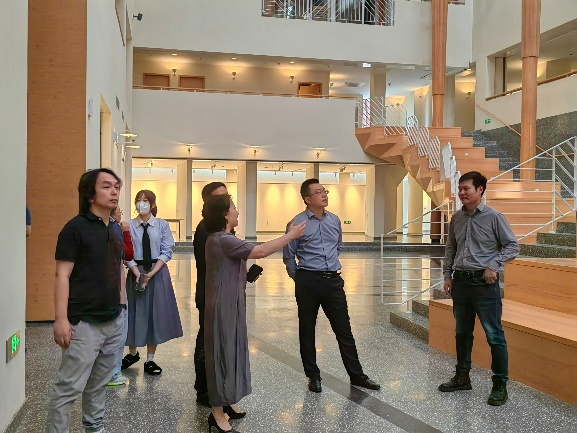 会前,张丹丹和韩挺带领参观了学院新启用的设计大楼,着重介绍了学院的整体布局和大楼的设计理念,表示这里是全体交大人开放、共享、包容的“家”。