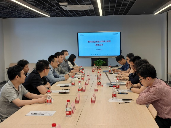党委书记张丹丹、副院长常丹妮、设计学学科带头人韩挺、设计系主任董占勋及设计系教师代表出席了调研交流会。