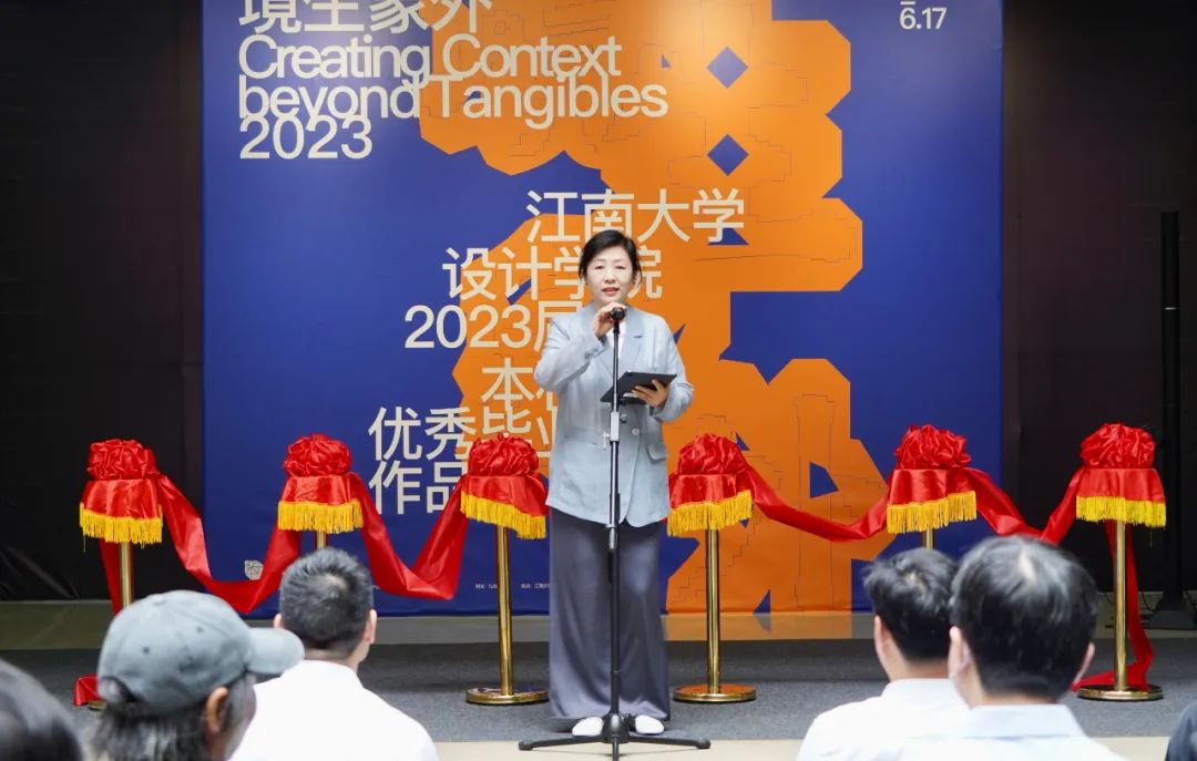 院长魏洁致辞。魏院首先介绍此次展览分为三个批次,第一批为视觉传达、环境艺术、整合创新专业,第二批为产品设计、工业设计和数字媒体艺术专业,第三批次为公共艺术、美术学专业,整个展览周期为5月26日至6月17日。此外,服装专业此前已如期举办了“鼋梦·共生”毕业作品秀。魏院强调,本次毕业展的主题是“境生象外”,用作品的有型表达,创造“象外之象”,展现设计创意的无限可能。该展览既是2023届同学们大学四年专业学习成果的集中展示,也是对四虎影院