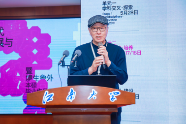 谢教授以《设计学科人才培养的目标与使命》为题进行了主旨报告,他指出:在新时代,不断满足人民对美好生活的需求,帮助人们诗意地栖居,应当成为设计学科的使命。在诸多艺术中,设计与生活最为密切,并通过富有诗意和哲理的精彩案例全是设计与创新的关系,以及成为一名优秀艺术家的条件,为论坛赋予了思想、信息、感情交流的深远内涵。