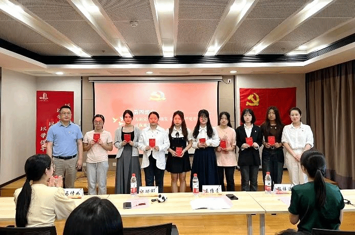 随后,党委书记王维青和党委副书记江琳娜为新党员代表颁发《中国共产党章程》并佩戴党员徽章,祝贺大家成为党组织的新鲜血液,并寄语所有新党员,党徽不只是一种标志,更承载着责任和担当,闪耀着青春和梦想,提醒大家时刻牢记“我是一名共产党员”,敢于亮身份、做表率,冲上前,永远无愧于胸前闪亮的党徽,无悔于心中坚定的信仰。