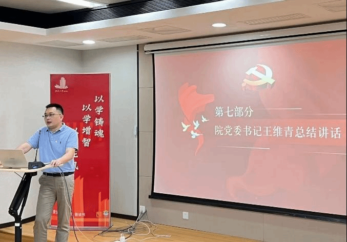 党委书记王维青作总结讲话。他首先代表学院党委祝贺所有新党员成功走完了成为党员的一路“长征”,并期待大家在新的征程上能够继续步履不停,赓续担当!随后他以习近平总书记“使每名党员都成为一面鲜红的旗帜”为例,帮助大家深刻理解了“旗帜”的深刻含义,即意味着坚守红色信仰,永葆炙热初心;坚持学习信念,永葆奋斗姿态;坚定设计信心,永葆担当本色。最后,他希望在场的所有党员都能成为一面鲜红的旗帜,带上亮闪闪的青春梦想和沉甸甸的时代使命,伴随着“笃学尚行、止于至善”的江南精神和“民生智慧、设计未来”的设计情怀,高高飘扬在强国复兴的伟大新征程上!