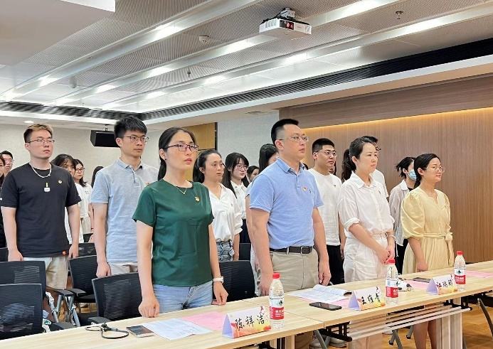 在党委副书记江琳娜的带领下,与会所有党员面向党旗,高举右拳,齐声宣誓。“我志愿加入中国共产党,拥护党的纲领,遵守党的章程,履行党员义务,执行党的决定……永不叛党。”铮铮誓言,是每一名党员对党和人民的庄严政治承诺,亦是为党奋斗终生、献身党的事业的誓言和座右铭。