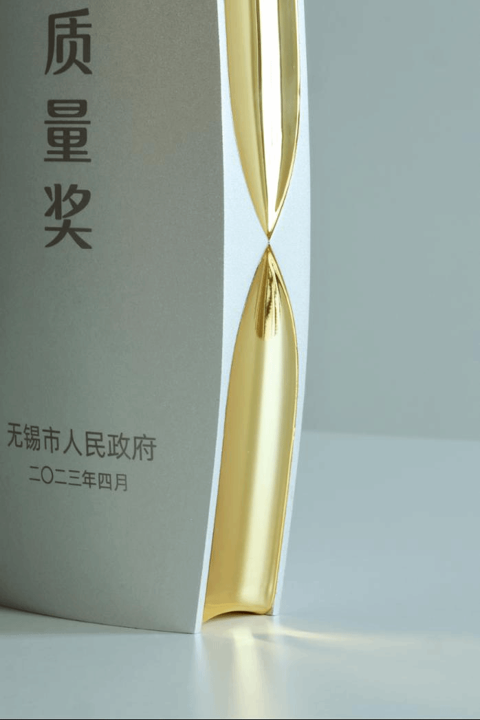 市长质量奖新奖杯的设计灵感,主要来源于历史的长河与恒久的计时沙漏元素,并结合太湖帆船扬帆起航的造型语意,体现了“百年锡商,至诚卓越”的城市质量精神。