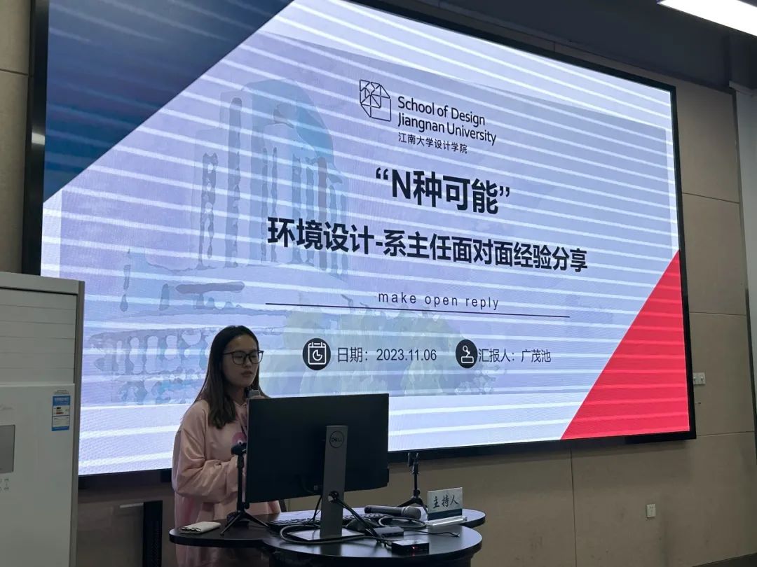 第八届系主任面对面活动(环境设计系专场)顺利开展。这次活动邀请了环境设计系系主任刘佳老师,以及张可意、广茂池两位学姐进行经验分享与互动交流。