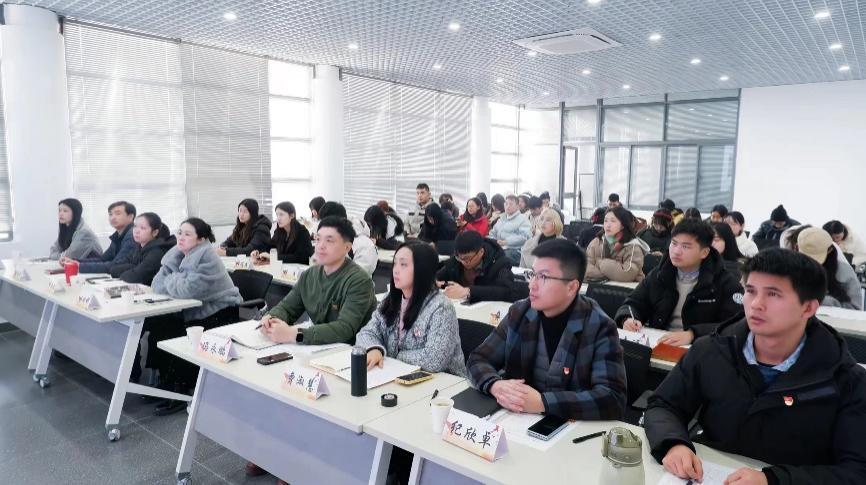 党委副书记兼副院长江琳娜、学工办主任吴雨琛、学工办副主任冯永鹏、全体辅导员、全体学生党支部书记及支委到场参会,会议由党建辅导员滕影主持。