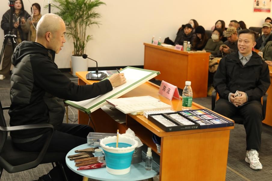 主办,无锡市美术家协会承办,江苏凤凰画材科技股份有限公司支持的“陈流水彩艺术示范分享会”开幕。