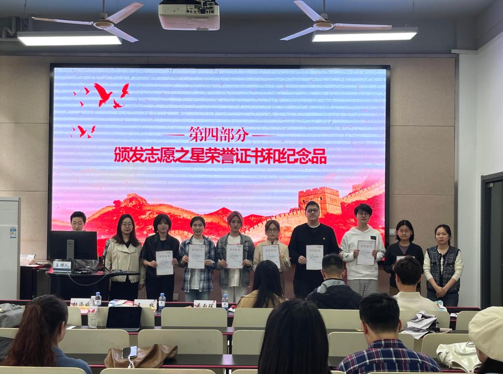 学院院学工办主任兼分团委书记吴雨琛宣读“志愿之星”名单并总结讲话