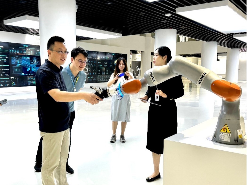 书记、教授一行表示热烈欢迎,并简要介绍了美的集团近年发展情况与未来科技部署。美的集团目前已成为集智能家居、工业技术、楼宇科技、机器人及自动化、数字化创新业务五大板块为一体的全球化科技集团,连续多年入选《财富》世界500强,2024年排名上升至第277位。美的集团通过数字化、智能化科技创新,10年间在数字化转型领域投入了超过170亿元,成立AI创新中心、美的软件工程院、建立美的云数据中心、成立隐私计算联合实验室,成为中国轻工业“数字化转型的典型样本”。美的对数字化探索已经进入了“深水区”:以统一、可靠、安全、高效的数字化底座,构建智慧家居、智慧楼宇、智慧能源、智慧出行、智慧医疗、智慧物流、智能制造等“北斗七星”型数智领域。