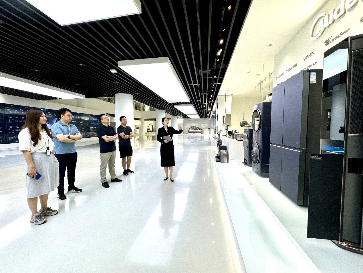 党委书记王维青带队,中国轻工业工业设计重点实验室主任周敏宁教授、工业设计系李瑞副教授、陆一晨副教授、产品设计系陈香副教授一行访问美的集团,洽谈校企深度合作、科技创新、协同育人、共建数智联合实验室相关事宜。美的集团副总裁兼家用空调事业部总裁赵磊、家用空调事业部研发体系主任缪雄伟、家用空调事业部运营与人力资源总监孙昱寰、家用空调事业部研发体系工业设计部长KIM JOONSUH、家用空调事业部研发体系工业设计高级工程师张艳参加会谈。