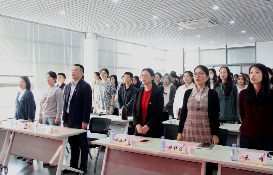 党委书记王维青、党委副书记兼副院长江琳娜、专职组织员陈祥洁、学工办主任兼分团委书记吴雨琛、党建辅导员王唯、滕影及全体分党校学员参会。仪式由培训班班主任滕影主持。
