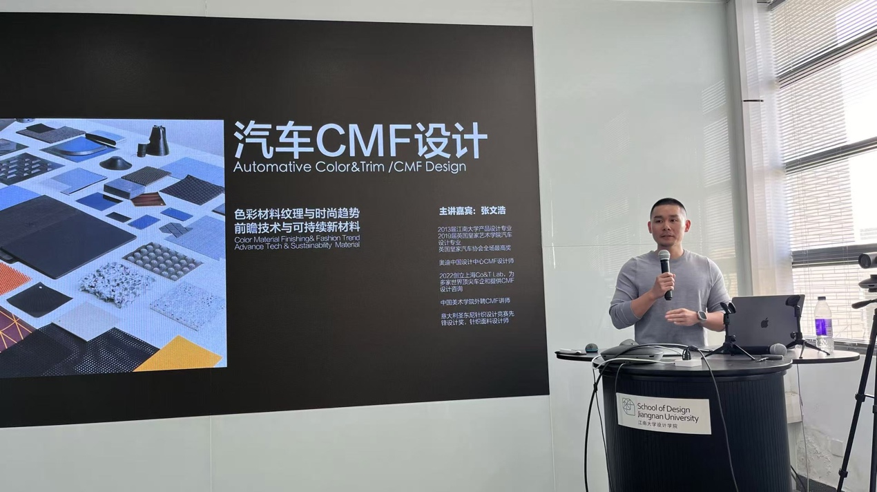 C510举办了题为《汽车CMF设计:色彩材料纹理与可持续》的讲座和交流活动。本次活动由产品设计系副主任张立昊组织和主持,产品设计系主任钱晓波副教授共同参加了本次活动。
