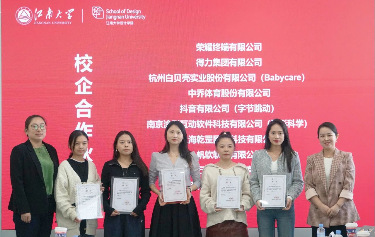 学生进行了肯定,认可了学生在职业规划和独立承担工作上的突出成绩,建议学生注重美术基础素养和软件技术技能的提升。得力集团有限公司卓琳介绍了公司四十余年从传统办公领域扩展到工具、家具、打印机等多个领域的发展历程,并表示公司倾向于选择有项目落地经验或有竞赛获奖经历的学生。两家初次合作单位追觅科技(苏州)有限公司(汤思怡)、上海万木生源家居有限公司(贺密)均对学院访企拓岗进行邀约,重视校招生的创新思维和对市场的前瞻性思考,提出除了建立常态化的互动交流机制(研讨活动和项目合作)外,期待能通过开展竞赛的方式选拔更多优秀人才。抖音有限公司(字节跳动)华依文介绍公司强调了公司对设计类人才的高需求,特别是对于产品设计、体验设计和美术等岗位的需求,后期期待与学院共建“抖音数字技能学习中心”和“数字营销未来星”项目,以提升学生在新媒体创作、运营和直播电商等方面的能力,促进学生高质量就业与创业。