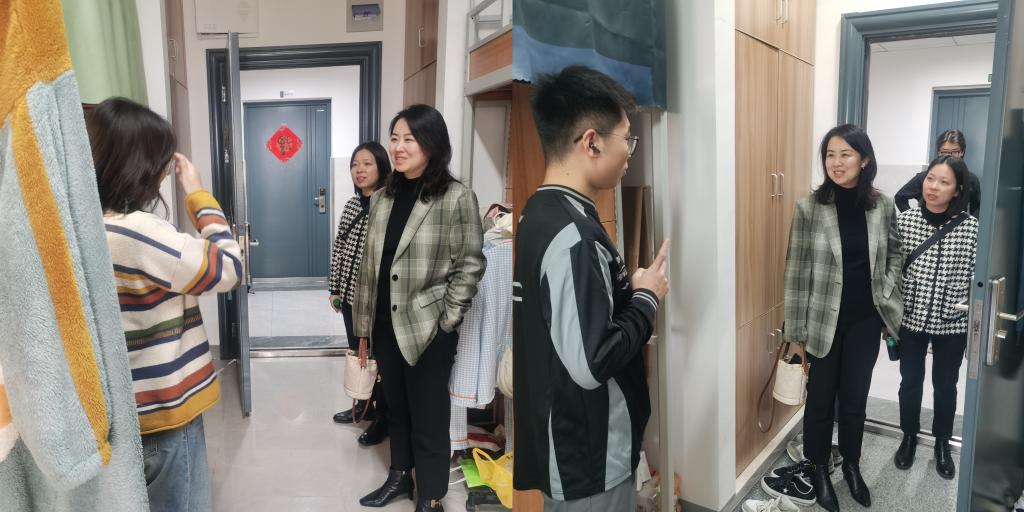 会后,江琳娜、吴雨琛和张楠一起走进学生宿舍,和学生们进行了亲切的交流,表达了学院领导老师对学生的关怀与问候,让学生放心,学校会在学习和生活方面给予学生最大的支持和帮助。
