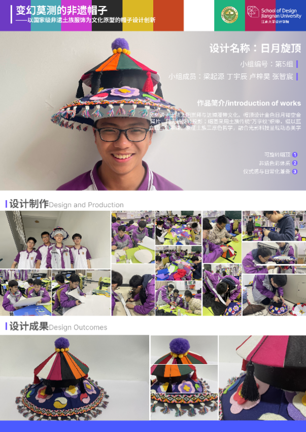 陈香副教授带领其研究生,依托其深厚的专业背景及在青海深耕的非遗文创设计经验,联合江苏省锡山高级中学设计创新班及陈香(青海)非遗文创设计室,共同打造了一场别开生面的设计创新课程——“变幻莫测的非遗帽子”。课程以国家“非遗”保护与活态传承战略为指引,巧妙聚焦青海土族的服饰文化,特别是其独特的帽子技艺、图纹、材料等方面的构成上,不仅立足于设计创新理论基础,也结合了高中生的设计思维和对生活用品的审美。