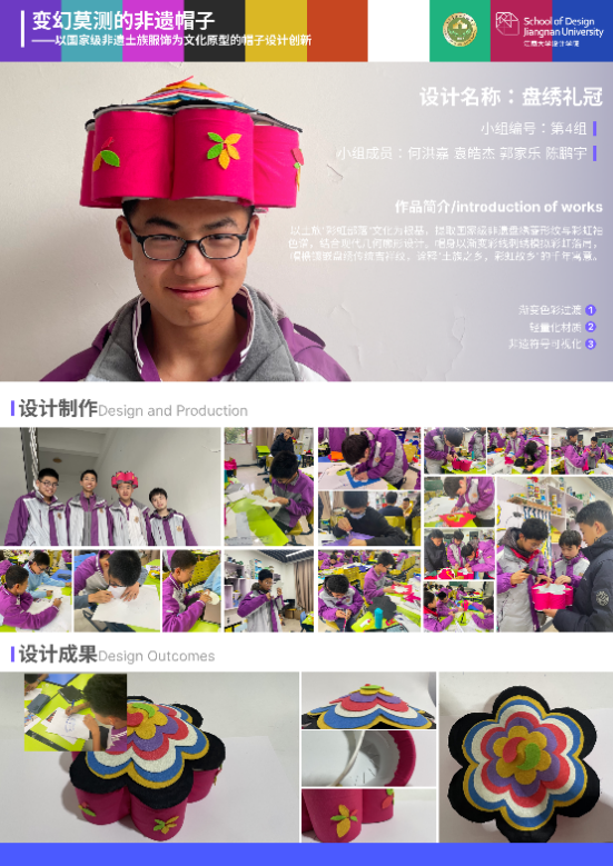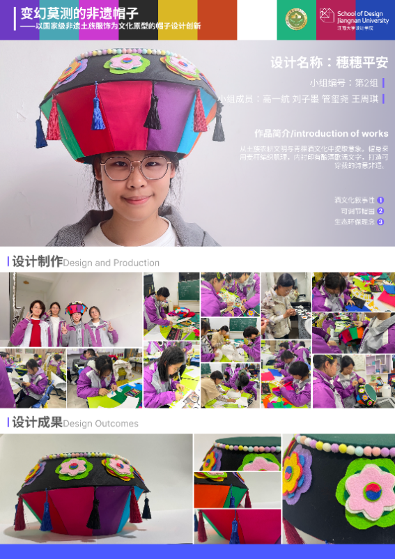 融入无锡市新吴区东西协作工作,依托学科优势创新开展“设计帮扶”,将高校美育资源精准输送至基础教育一线。学院在无锡市新吴区东西部协作工作部署下,联合青海省海东市互助县文体旅游局与本地优质中学,打造了特色设计创新课程“千变万化的非遗帽子”,成为无锡教育援青、文化共荣的教育实践。