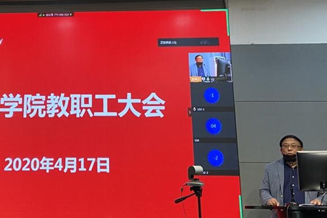 召开新学期第一次全体教职工大会,按照疫情防控工作要求,以及组织工作的程序标准和管理规范,本次会议采用线下会场配合线上腾讯“云会议”的形式开展,设置一个主会场和两个分会场。会议由学院党委书记邱建平主持。