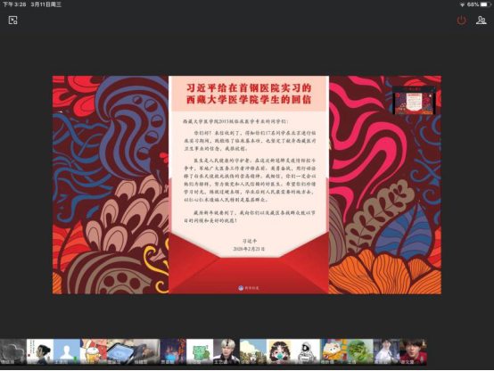 秦邦宪特称团支部美术1702通过云上主题团日活动,认真学习《习近平给在首钢医院实习的西藏大学医学院学生的回信》,号召全体团员青年以军地广大医务工作者为榜样,争做社会主义合格建设者和可靠接班人。
