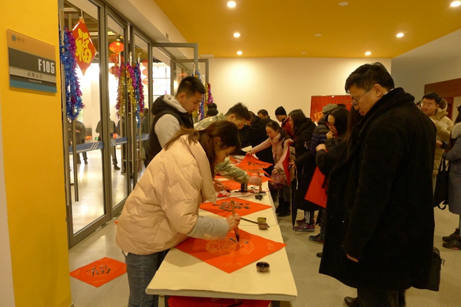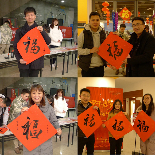 活动现场,墨香四溢,学生、教师纷纷到现场领福。学生党员将自己设计的“福”字作品以及当场运笔书写的“福”字送到师生手中,每个福字都承载着新春的祝福与喜气。活动过程中也吸引了老师们的创作热情,过伟敏教授等老师现场挥毫,为师生写福。活动之后,师生互道节日祝福并纷纷合影留念,领到福字的师生表示感谢党员同志的关爱,希望年年举办这种充满爱意和温暖的活动。参加送福的同学表示参加本次活动获益匪浅,看到自己的作品能够被师生喜爱非常有成就感。另外,本次活动让作为党员的他们真正体会到“为人民服务”的奉献精神,增强了对党组织的认同感和归属感。