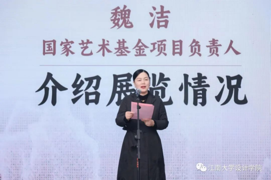 国家艺术基金项目负责人魏洁教授介绍了展览的相关情况和背景,向参与项目培训和与会的嘉宾表示感谢;她表示,本次项目旨在探索新的艺术路径与应用方法,形成从材料技术到雕塑艺术,从工艺表达到雕塑形态,从传统造物到艺术创新的完整谱系,项目通过紫砂雕塑与艺术创新、紫砂雕塑与造物融合、紫砂雕塑与产品艺术三大方向的创新,充分表现紫砂独特的创作语言,诠释当代的审美观念与文化内涵。