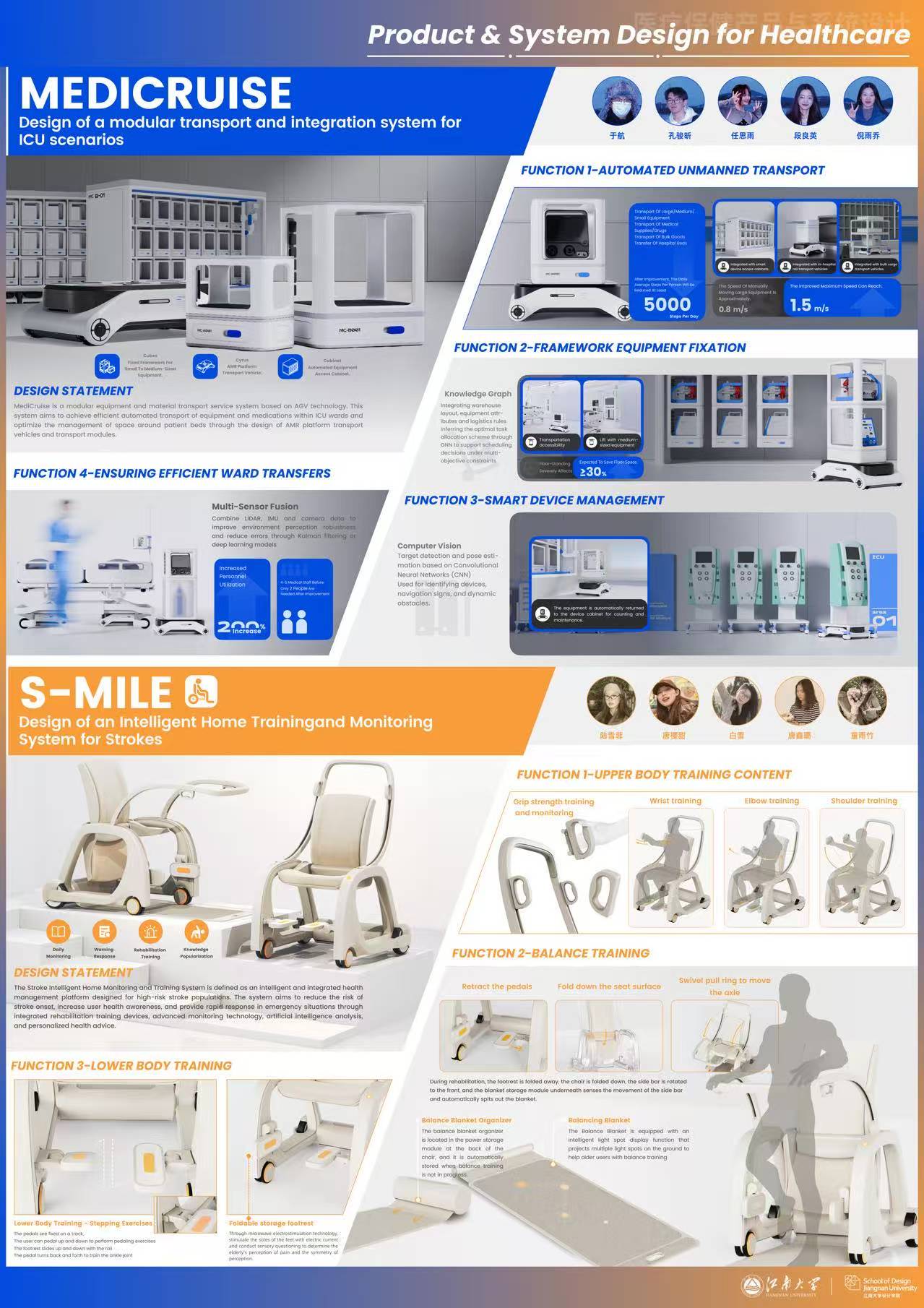 《MediCruise——ICU场景下的模块化运输及整合系统设计》、《迈乐S-Mile脑卒中智能居家监测训练系统》