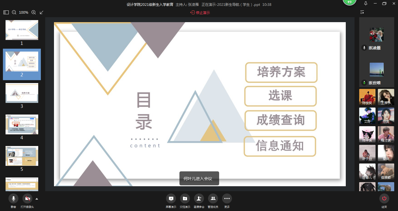 2021级新生线上入学教育”会议。