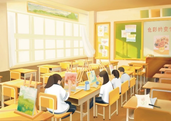 乡村美术教室改造后的插画场景展示