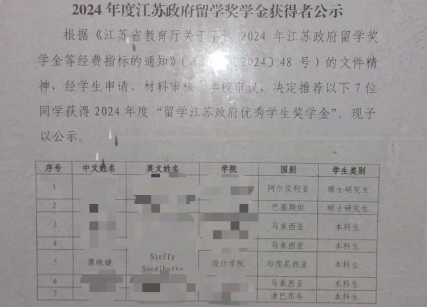 奖学金公示名单