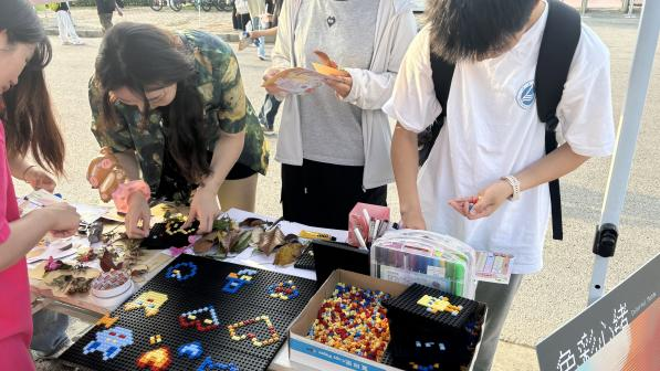 大厅NANIMOMO迎来终章——「色彩心绪・拼出你的心情」积木壁画DIY。本场以“色彩心理学”为切入点,通过红、橙、淡黄、浅蓝、深蓝五种自然色调,引导参与者用积木色块诠释当下心境,并共同完成一幅巨型“心灵风景线”。