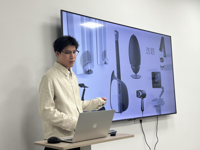 活动伊始,孙若成学长主要从经验分享、找什么样的工作、如何做作品集和培养四种能力四个角度出发,向同学们分享了自己的宝贵经验。首先促进同学们积极培养造型能力、工程实现能力、设计思维与方法论、用户观察能力等专业能力。其次,孙学长从造型能力、产品细节、排版工程实现能力,特殊材质的运用、设计思维与方法论-作品集创新能力,通点越深,创新越真,和用户观察能力等方面进行介绍,更加加强了同学们的认知能力。最后,学长给予了同学们一些小技巧。首先在求职机率上,转正>内推>官网>招聘软件。性格测试查攻略再做,强调积极向上,吃苦耐劳的精神,并且四级成绩一定要过。一定要记得签保底工作。