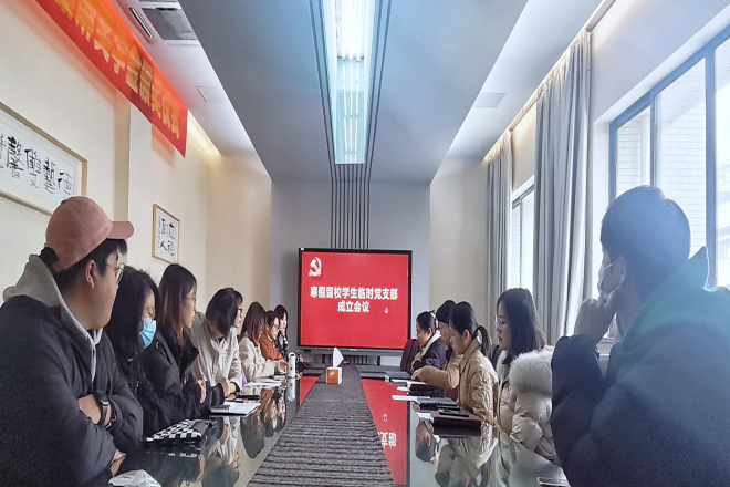 寒假留校学生临时党支部成立仪式在B304会议室举行。学院党委副书记王晖、分团委书记吴雨琛、党建辅导员章琳及学生党员代表共同参加了成立仪式,会议由辅导员马倩如主持。