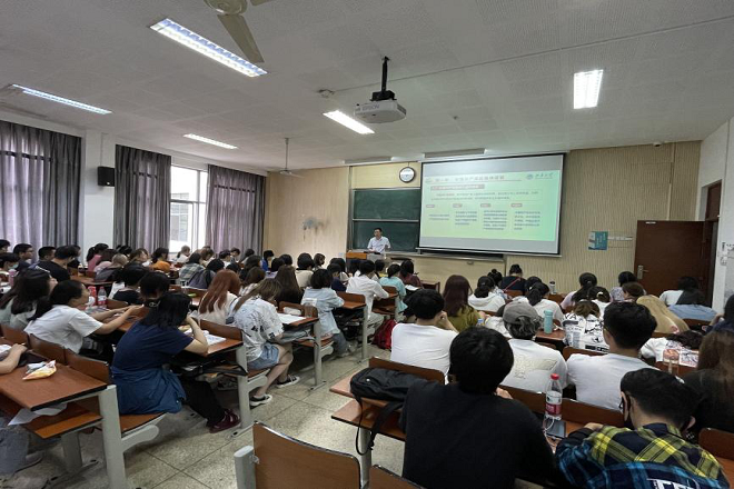 张凌浩教授首先介绍了中国共产党的精神谱系,生动讲解了中国共产党精神内涵及其精神谱系的构建,带领大家回顾了井冈山精神、长征精神、遵义会议精神、延安精神、西柏坡精神、红岩精神、抗美援朝精神、“两弹一星”精神、特区精神、抗洪精神、抗震救灾精神、抗疫精神等伟大精神;其次,结合自己的体会,针对中国共产党精神的江苏篇章进行阐述,重点介绍了雨花英烈及其群体特点、雨花英烈精神的科学内涵、周恩来精神以及新四军铁军精神;最后,以传承和弘扬中国共产党精神为目标,勉励广大学子悟精神,知何故;悟精神,明方向;悟精神、创新路,坚定理想信念,传承红色基因,赓续红色血脉,为实现中华民族伟大复兴的中国梦贡献自己的智慧与力量!