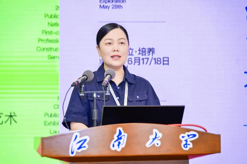 陈晓皎以《设计学科服务于国家建设》为题进行了主旨报告,分享了浙江大学艺术与科技新专业的建设情况,以具体的实践研究代表性案例为基础分享了学科领域交叉融合的人才培养模式,结合国家国防项目、盛世修典“中国历代绘画大系”、研究作为图像语义特征研究与辅助鉴别平台项目等实践案例,重点分享了艺术与科技专业如何发挥设计学科交叉学科特色服务国家国防建设、服务国家文化建设等时代命题开展人才培养和设计教育经验。