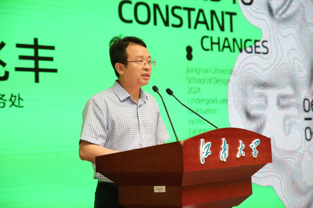 院长魏洁致欢迎辞。致辞中,魏院阐释了本次展览“以应无穷”的主题内涵。“无穷”,蕴含着中国古代哲学中对人与自然和谐共处的深刻理解,而设计正是一种连接人与世界、过去与未来、物质与精神的桥梁。同时,设计边界不断拓展,技术与艺术的融合让设计领域焕发新的活力。这一主题寓意着设计学子们以无尽的创意应对未来的挑战,用设计的语言探索未知,诠释变化,在传统与现代、科技与艺术的交响中寻找平衡。