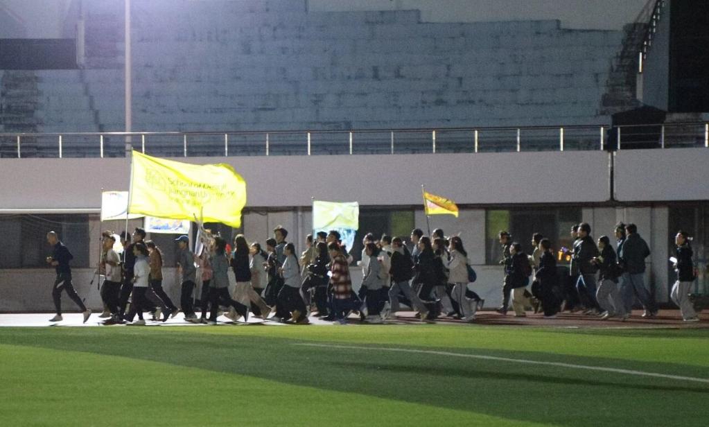 副院长周林老师的领跑下,2025级新生用跃动的身影点亮了这个属于青春的夜晚。