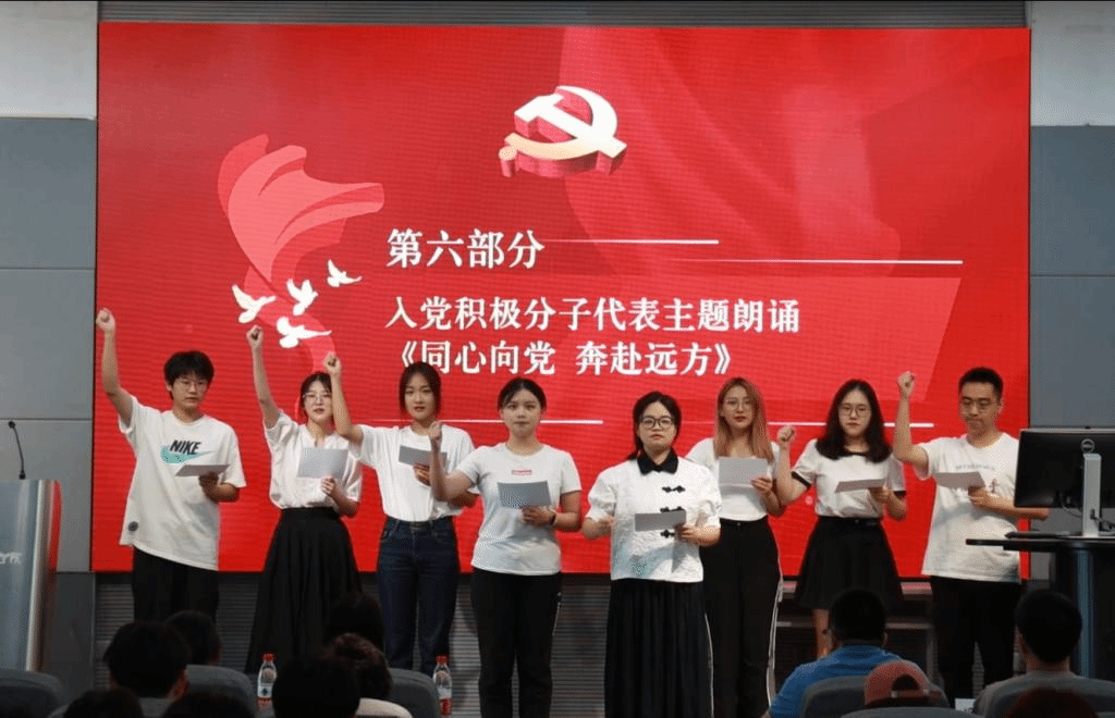 随后,学员代表为与会人员带来《同心向党奔赴远方》的主题朗诵。“我是设院人,我懂得关山难越之时拼搏方能冰消冻释……我是江南人,厚德至诚,前行的每一步都清澈……我是中国人,报国当自强,呼喊的每一声都坚定……”慷慨激昂的朗诵充分表达了积极分子们“少年负壮气,奋烈自有时”的一腔热血和坚定的入党初心,也生动诠释了设院青年们为百年新征程聚力启航,为时代进一步蓄势待发的朗朗决心。