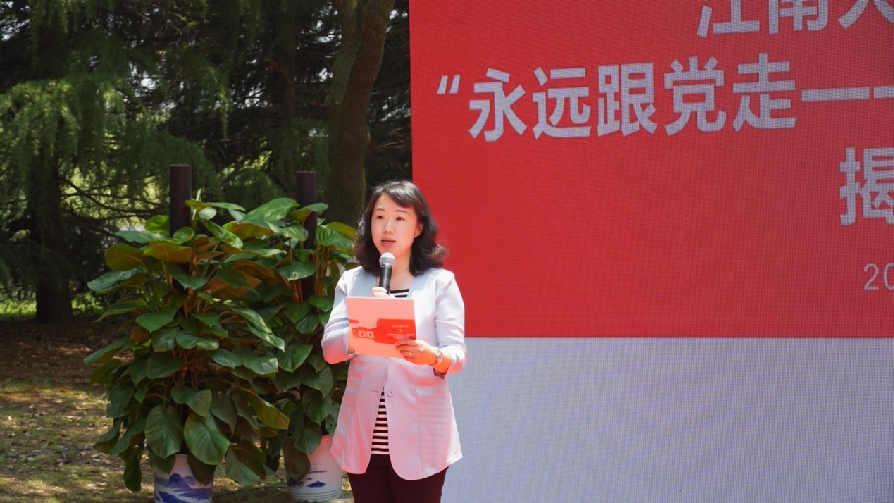 “永远跟党走——师生同绘百年红墙”揭幕仪式在学院“百年红墙”广场举行,校党委常委、组织部部长张影陆,校党委常委、党委办公室主任、统战部部长朱飞,无锡博物院党总支书记肖炜,四虎影院