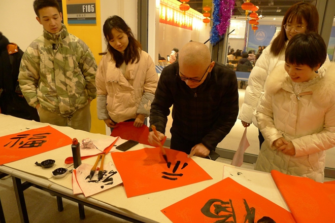 活动现场,墨香四溢,学生、教师纷纷到现场领福。学生党员将自己设计的“福”字作品以及当场运笔书写的“福”字送到师生手中,每个福字都承载着新春的祝福与喜气。活动过程中也吸引了老师们的创作热情,过伟敏教授等老师现场挥毫,为师生写福。活动之后,师生互道节日祝福并纷纷合影留念,领到福字的师生表示感谢党员同志的关爱,希望年年举办这种充满爱意和温暖的活动。参加送福的同学表示参加本次活动获益匪浅,看到自己的作品能够被师生喜爱非常有成就感。另外,本次活动让作为党员的他们真正体会到“为人民服务”的奉献精神,增强了对党组织的认同感和归属感。